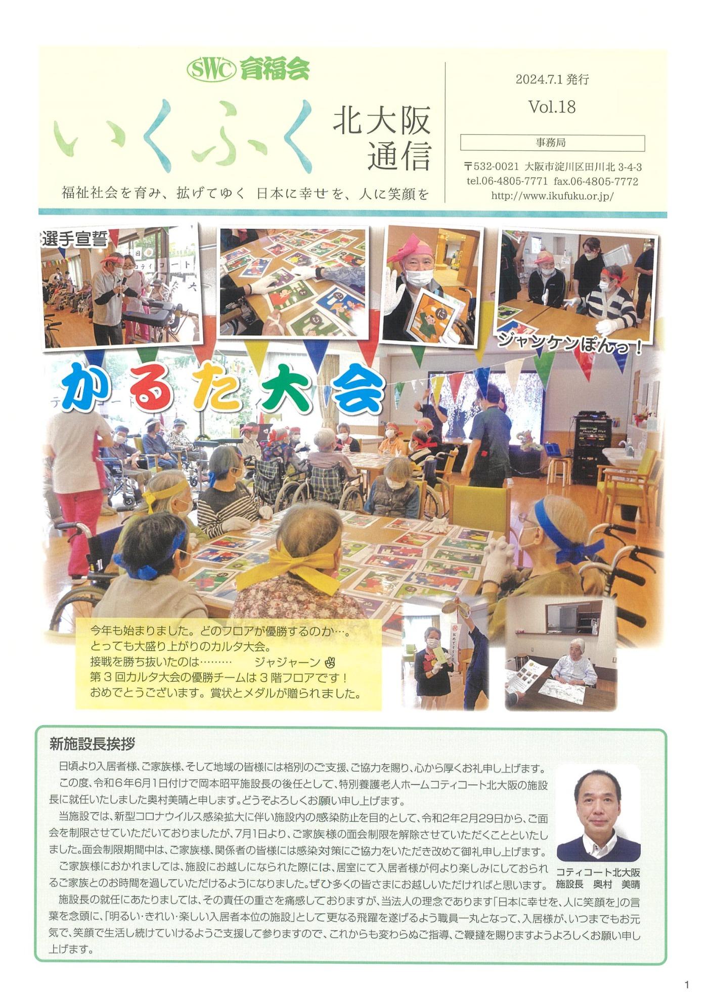 2024.07.01 いくふく北大阪通信vol.18 今号では9月と10月に行われたイベントを中心に掲載しています。 暑い夏が終わり季節は秋になり、敬老祝賀会、運動会など秋らしいイベント盛りだくさんでした。 どうぞご覧ください! PDFをダウンロード