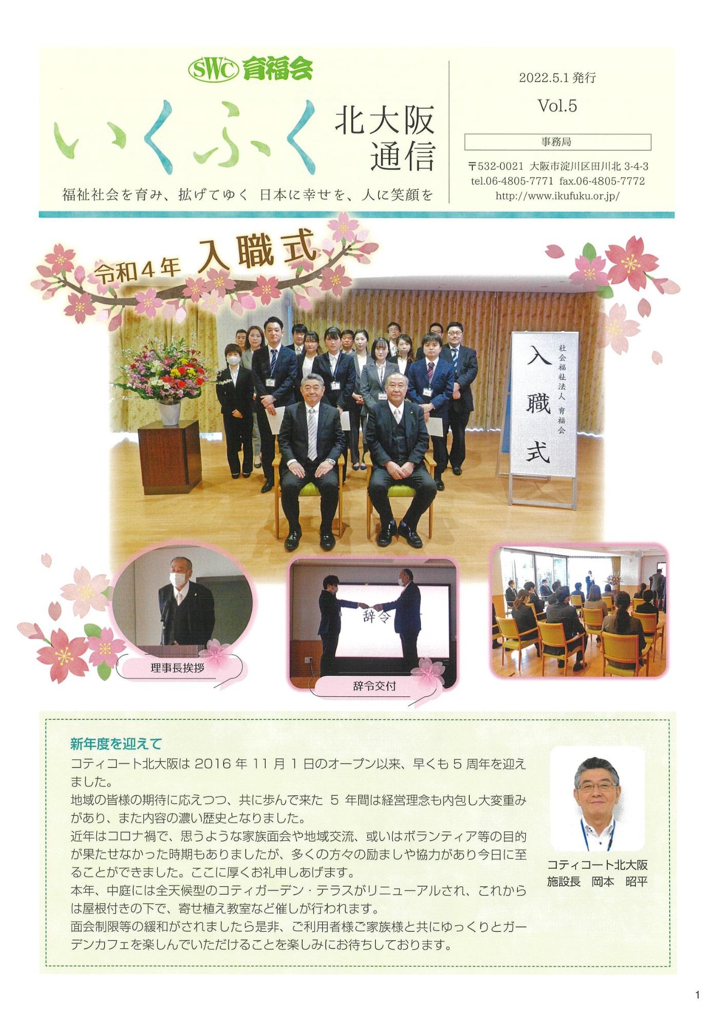 2022.05.01 いくふく北大阪通信vol.5 コティコート北大阪の令和4年度は新卒職員の入職式から始まりました。 今号では、入職式など3月・4月の行事の様子をお伝えしています。 どうぞご覧下さい! PDFをダウンロード