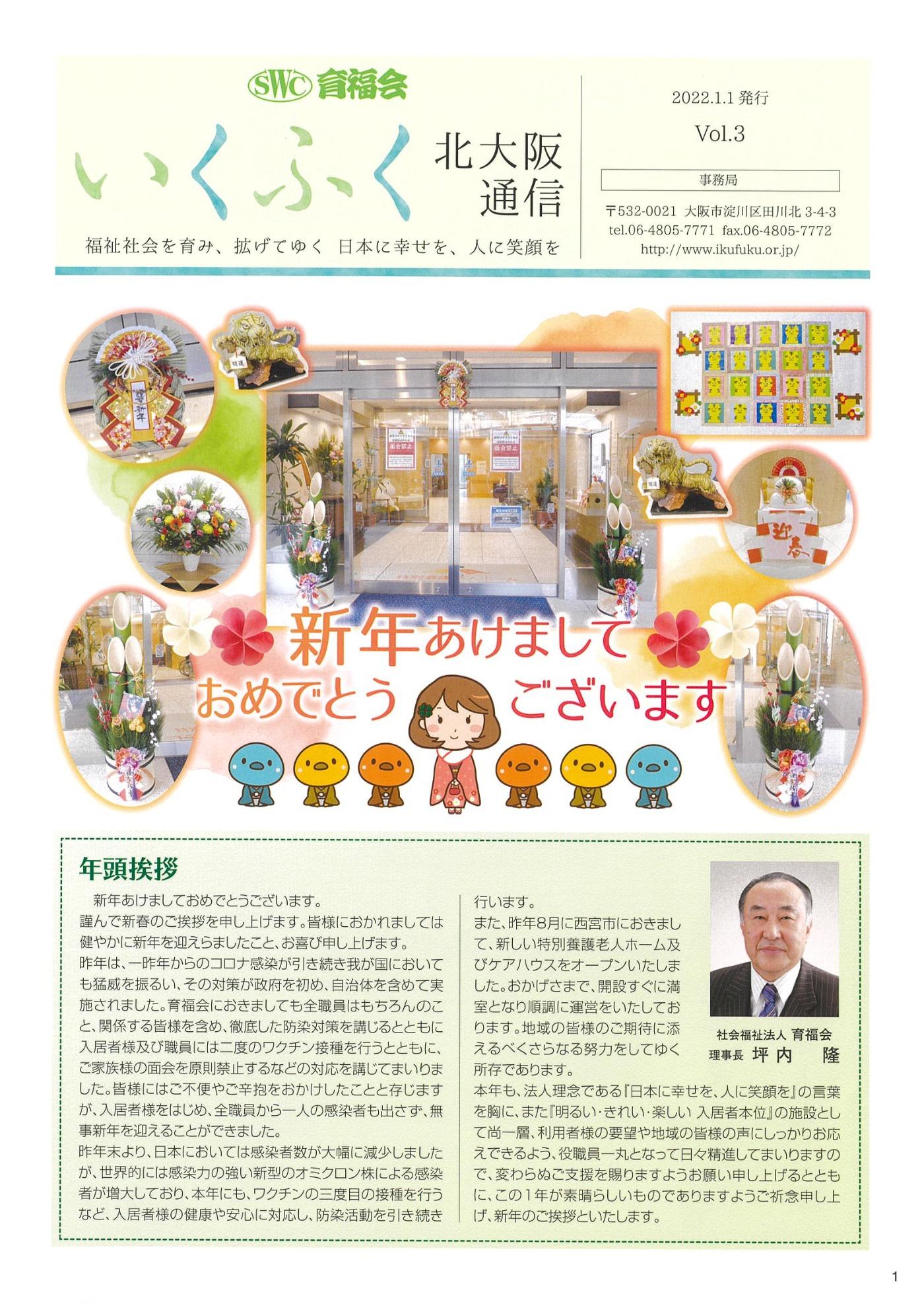 2022.01.01 いくふく北大阪通信vol.3 いくふく北大阪通信vol.3は、新春特集号になります。 昨年末に行ったクリスマス会やもちつき大会の様子、コティカフェの様子などをお伝えしています。 ぜひご覧ください! 本年もよろしくお願いいたします。 PDFをダウンロード
