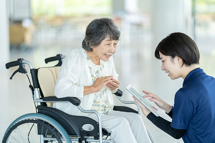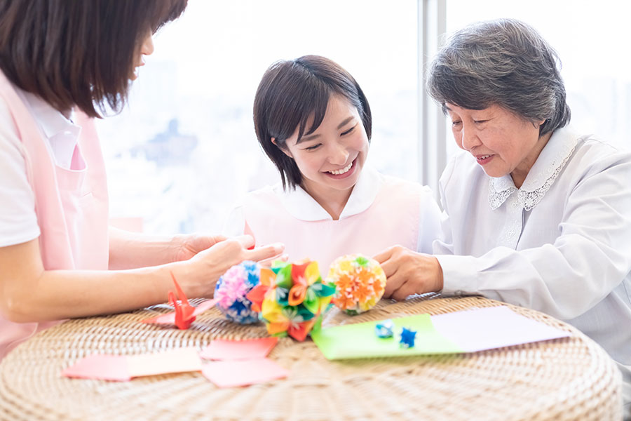 入居者様のお部屋や身の回り品の整理整頓をお手伝い。また、入浴も行います。