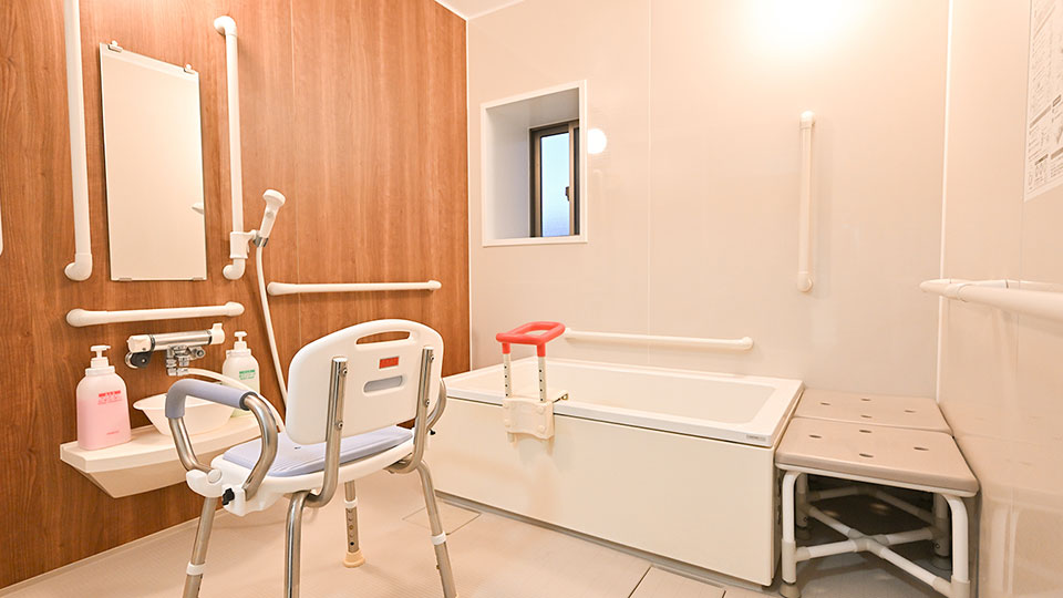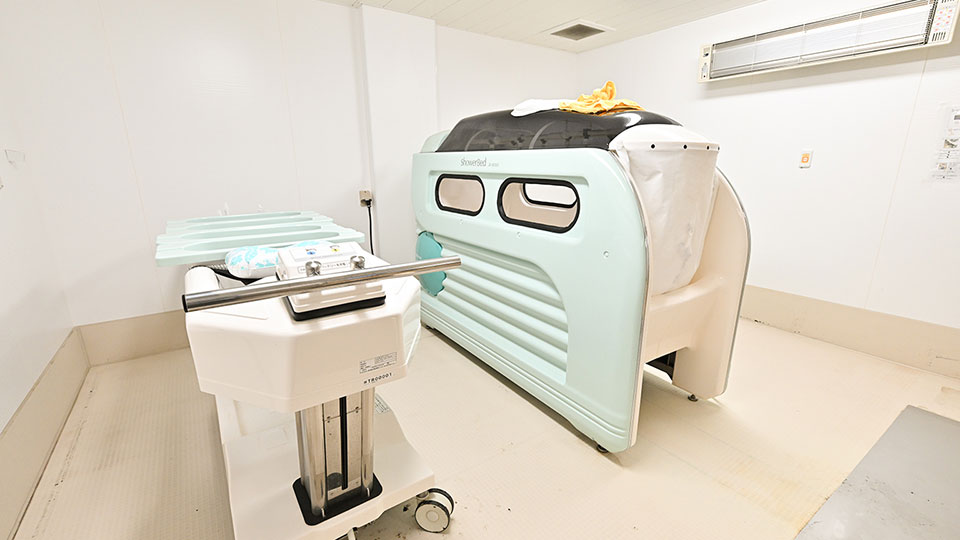 落ち着いた広いスペースに最新型の特浴をご用意しています。