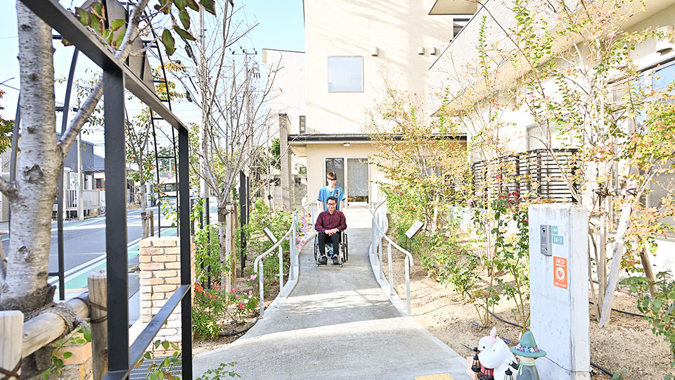 季節の移ろいを感じる広々としたお庭と、思いや希望に寄り添った快適な生活を提供します。 個室のお部屋を「我が家」として使いながら、10名までのユニットに交流のリビングを配置。 「家族」として催物を楽しみながら、自分らしさを大切にゆったりとした空間です。