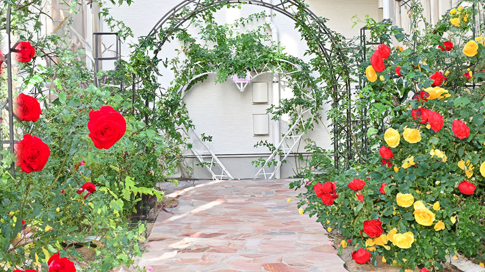 100種以上の多彩なバラを満喫できます。見頃は5月、甘い香りに包まれた癒される空間をお楽しみください。