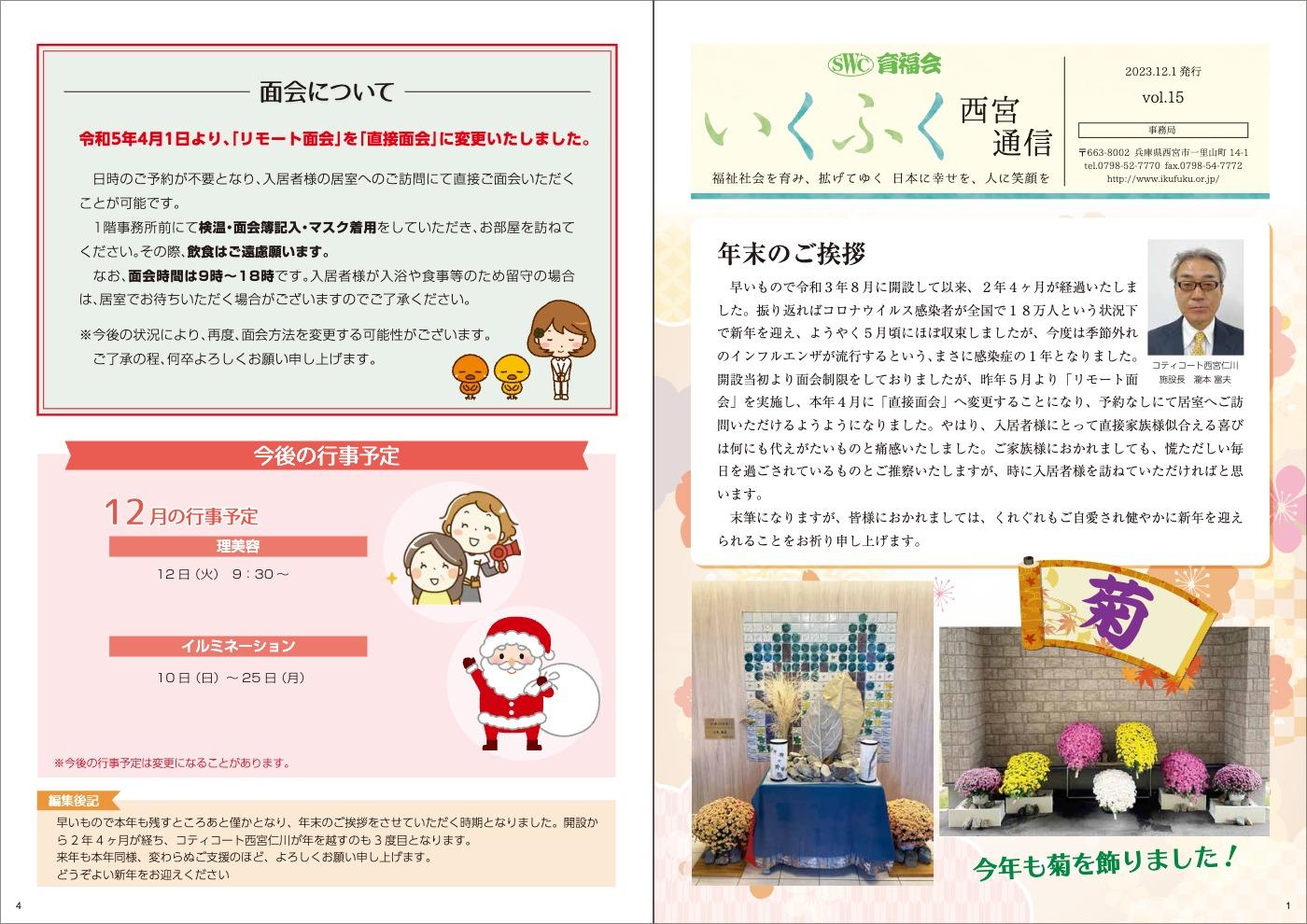 今年最後の「いくふく西宮通信」は、年末特集号となります。年末のご挨拶や10月・11月に開催されたイベントの様子をお伝えしています。12月は毎夜イルミネーションを展開していますので、ぜひご鑑賞ください!