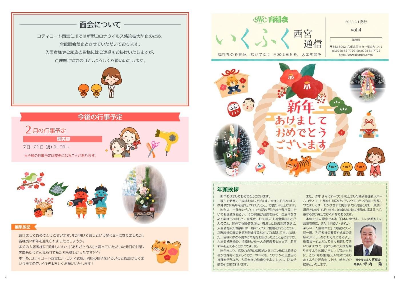 『いくふく西宮通信vol.4』では、コティコート西宮仁川で初めての年末年始の模様を、写真盛りだくさんでお伝えしています。